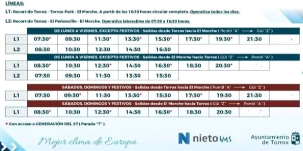 Hier die Übersicht bereitgestellt von der Gemeinde Torrox für die Saison Winter 2025/26: